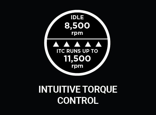 Powered by a patented IN2 Vector motor with Intuitive Torque Control technology, it idles at 8,500 and speeds up to 11,500 RPM to adjust for resistance.